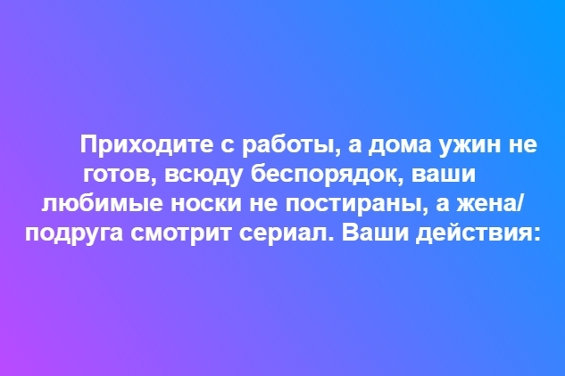 - постараюсь как можно мягче объяснить любимой, что такое положение вещей мне порядком поднадоело, и предложу помочь ей приготовить ужин