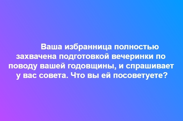 - устроить то, чего ей больше всего хочется, все-таки именно женщины больше всего радуются таким мероприятиям
