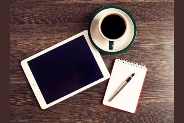 - Дерево, стол, авторучка, айпад, блюдце