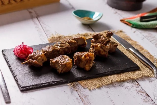 - Из свинины кусочки отдельно друг от друга, из говядины-вплотную