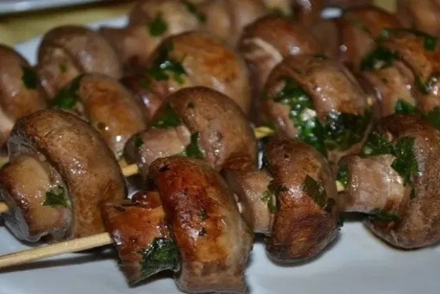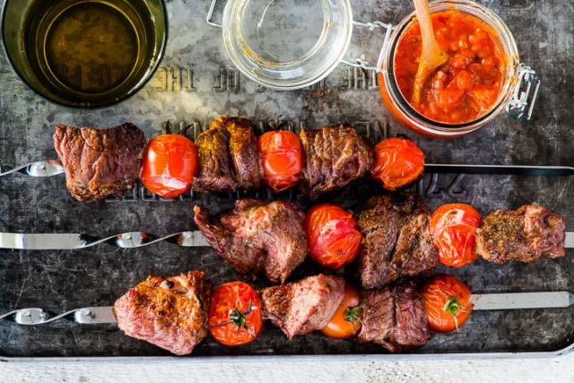 - Каждый кусочек мяса и в свином и в говяжьем шашлыке отдаляется помидором