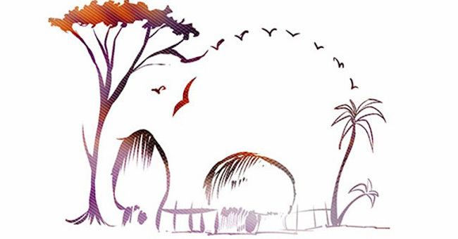 - дом, деревья и птицы