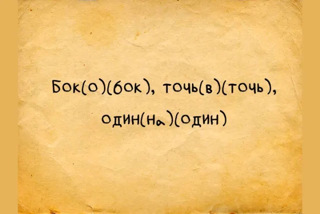 - Бок-о-бок, точь-в-точь, один-на-один