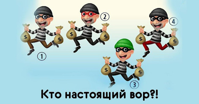 Сегодня у вас есть уникальная возможность проверить свою интуицию, и в то же время узнать что-то новое о себе! При прохождении этого теста лучше не спешить! Внимательно посмотрите на картинку и попробуйте угадать, кто из этих людей, настоящий вор! Выберите один из вариантов и узнайте, о чем он говорит!