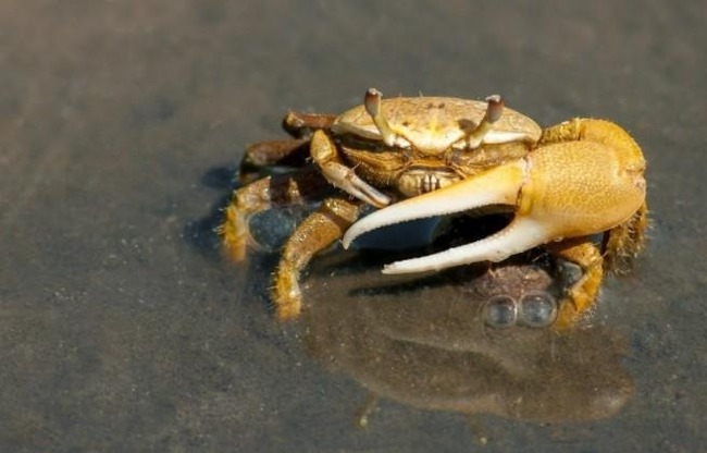 - втягивает под панцирь воздух или воду, чтобы он треснул