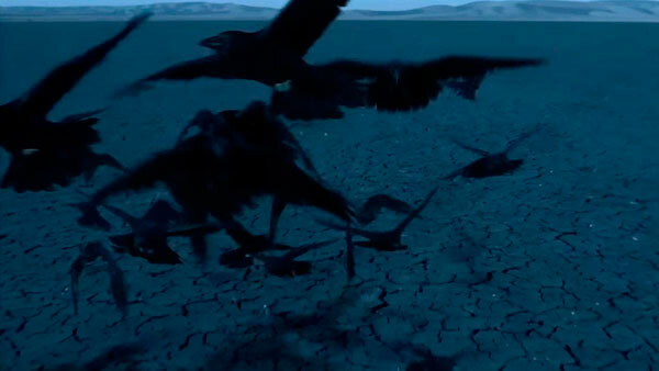 - Тут летят вороны, по духу похоже на клип Линды — «Ворона»
