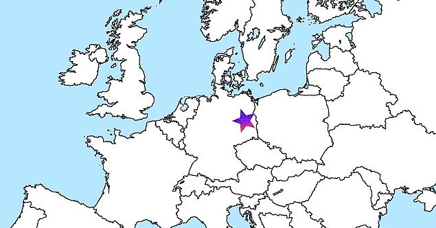 Перед вами появится абсолютно пустая карта Европы, на которой обозначены лишь границы государств. От вас потребуется угадать, какой город мы обозначили звездочкой.