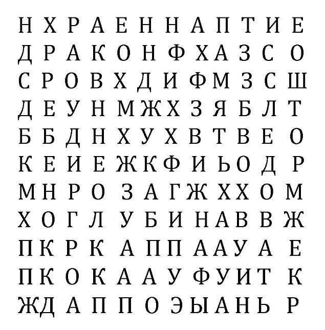 Наш внутренний мир складывается из сознательного и подсознательного. И именно ко второму мы собираемся сегодня прибегнуть и вытянуть из него некоторую важную информацию о вас. Для этого вам нужно посмотреть на сетку букв и отметить слово, которое вы увидели первым. А остальное сделаем мы.
