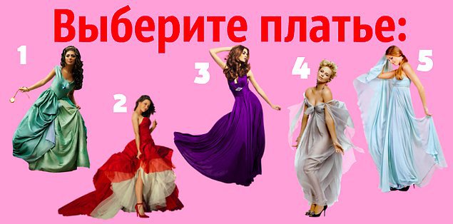 Поэтому сегодня предлагаем вам выбрать одно из пяти платьев, а мы, основываясь на этом, расскажем, что о вас думают мужчины...