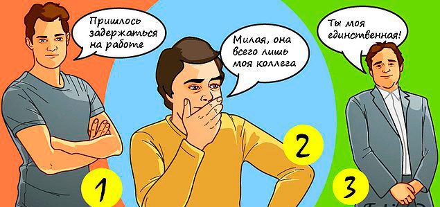 Взгляните на трех мужчин. Кто из них врет своей жене?