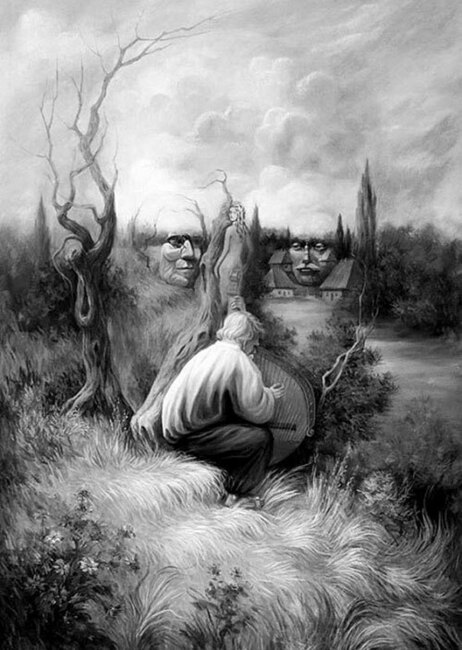Перед вами иллюстрация. На ней — шесть лиц. Не всегда легкоуловимых, не сразу очевидных. Некоторые спрятались в складках, линиях, переплетениях. А некоторые — смотрят прямо на вас.