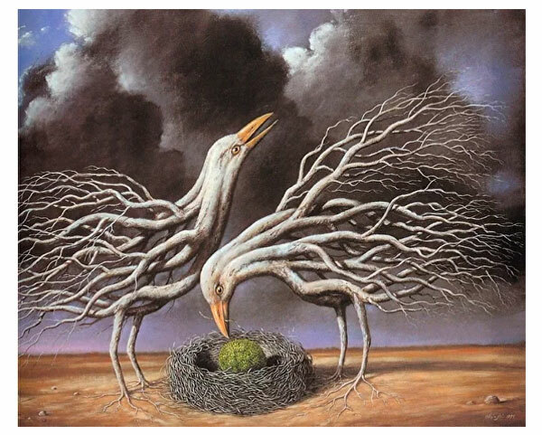 - Пара птиц у гнезда